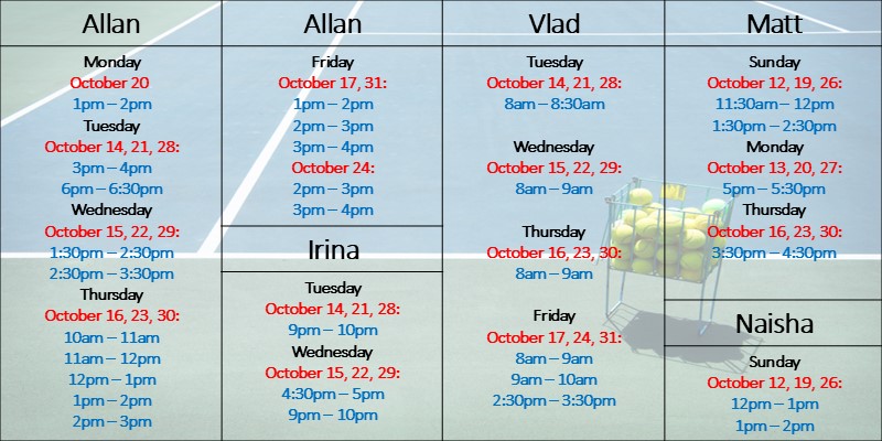 To book a lesson or hitting partner, please send us an email & submit your preference for day & time from the options available below: play@camperdowntennis.com.au